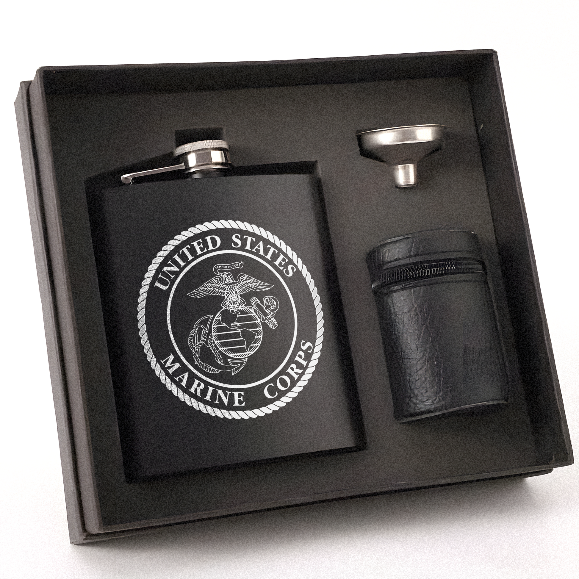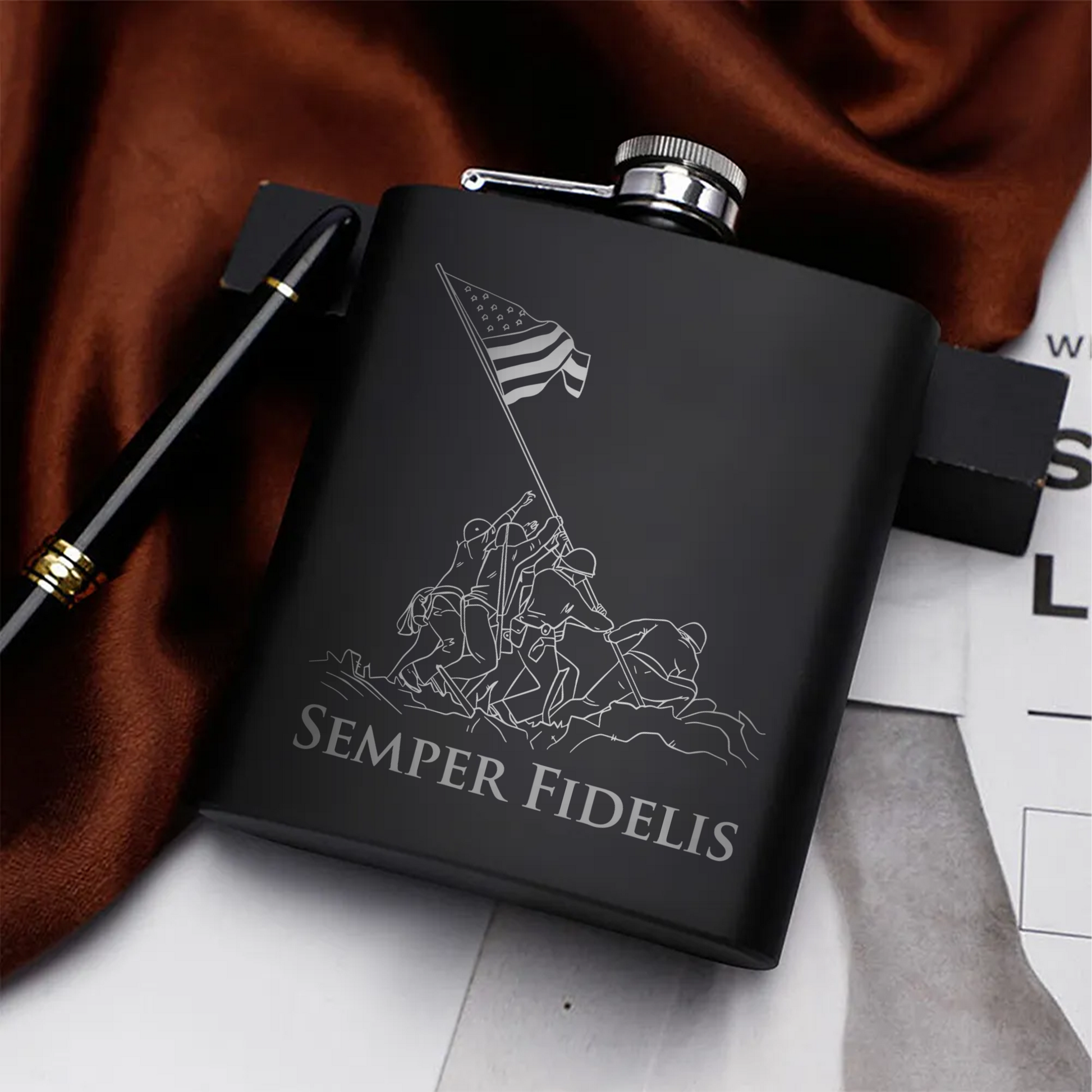 Featuring the iconic Marine Corps emblem, this flask symbolizes the values of honor, bravery, and freedom. Perfect for veterans and supporters alike, it serves as a reminder of shared experiences and lasting bonds.