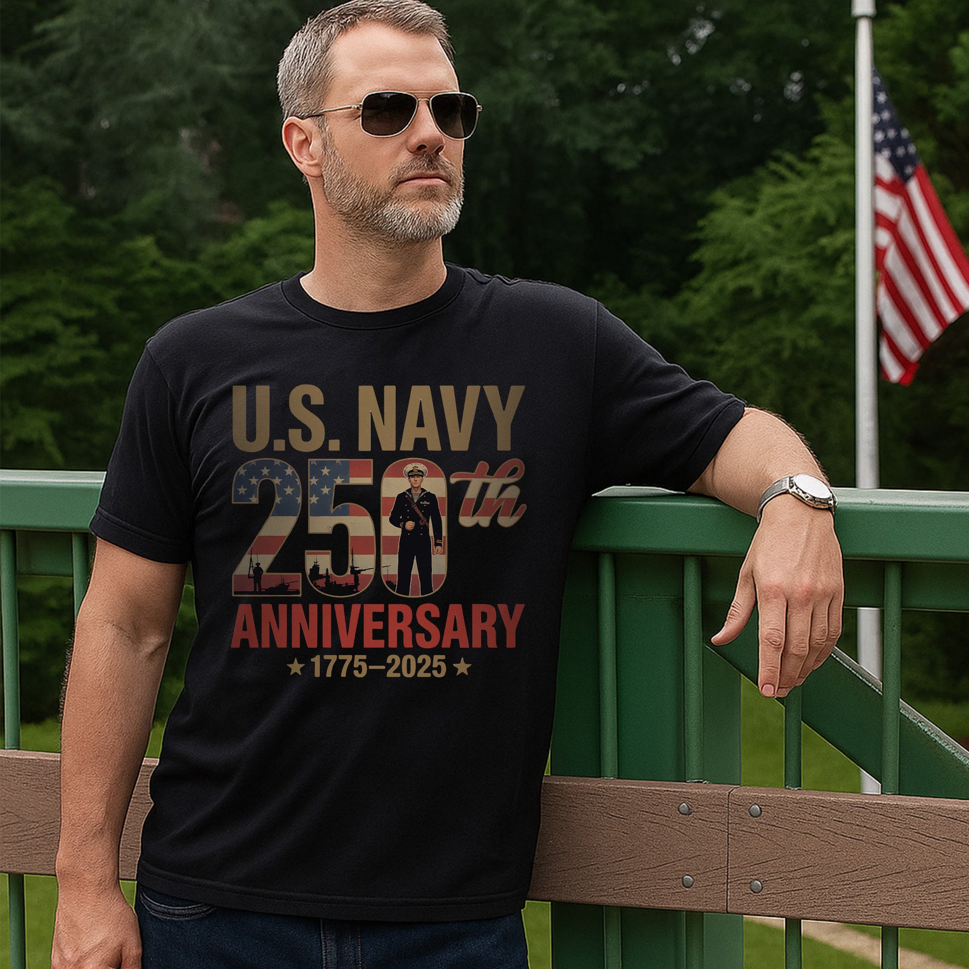 Proud Navy Day 250th Anniversary 1775โ2025 US Military Veteran Patriotic Tribute T-Shirt