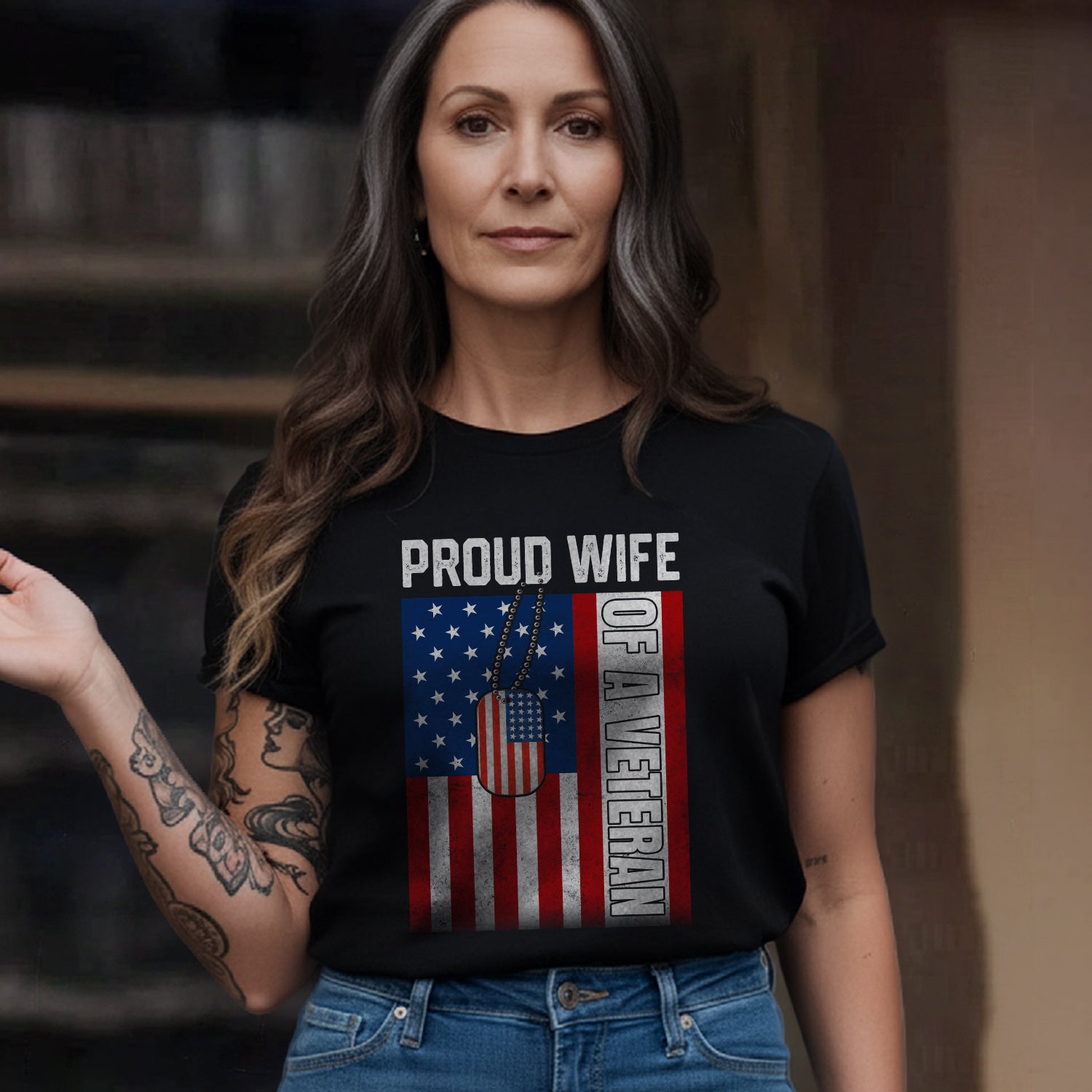 Proud Wife of a Veteran – Patriotic T-Shirt