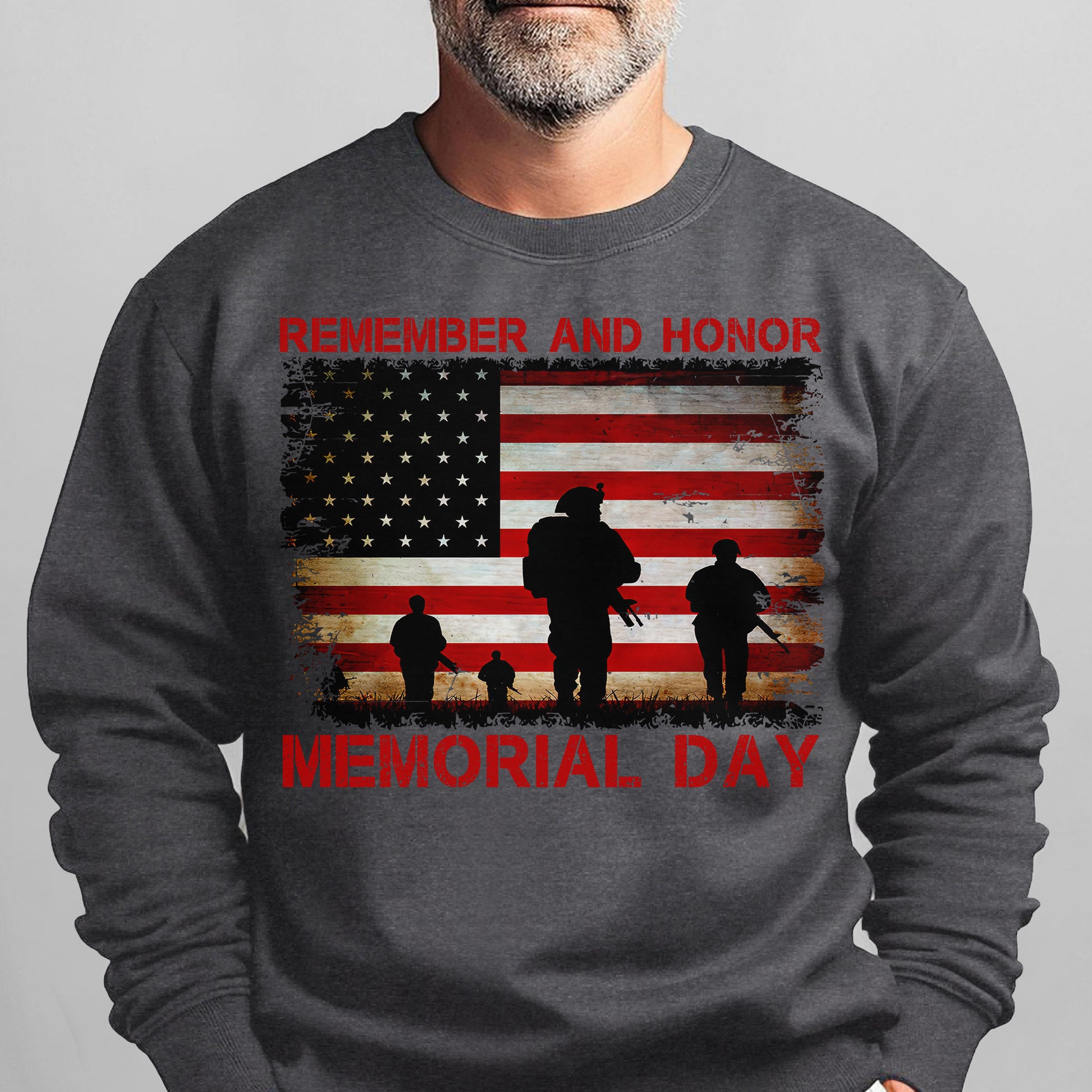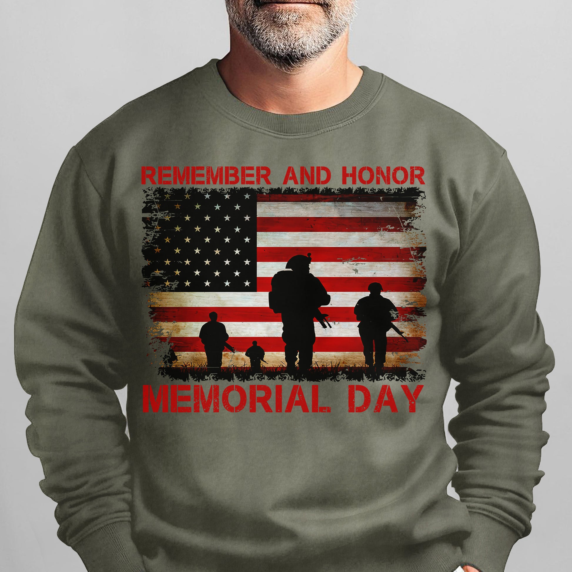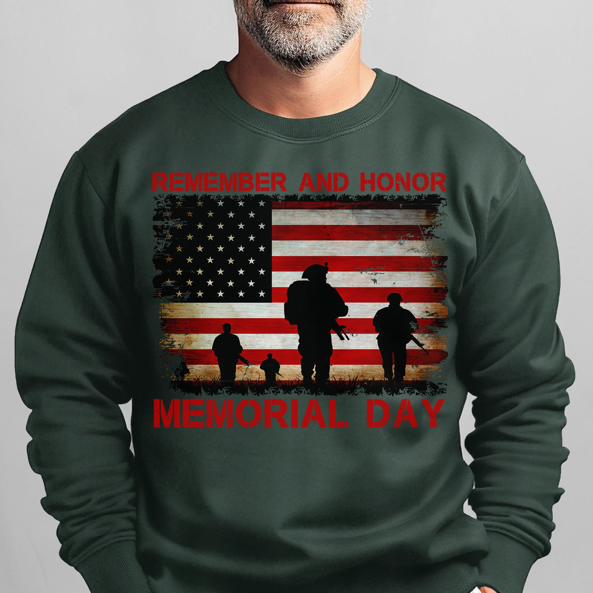 Featuring a striking design that combines the American flag with silhouettes of soldiers, this sweatshirt symbolizes courage, brotherhood, and the enduring spirit of our veterans.