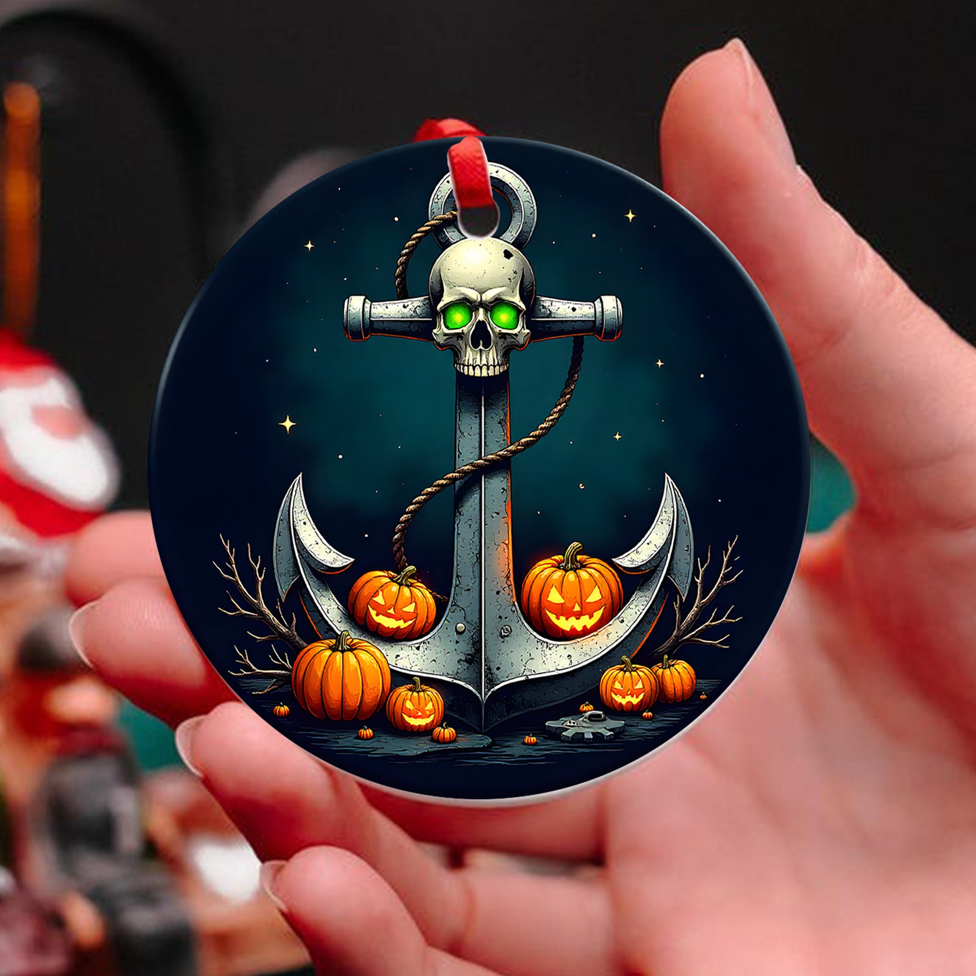Celebrate the spirit of Halloween with this striking ornament that combines maritime strength with a touch of the eerie. Honor the season with a design that evokes courage and adventure.