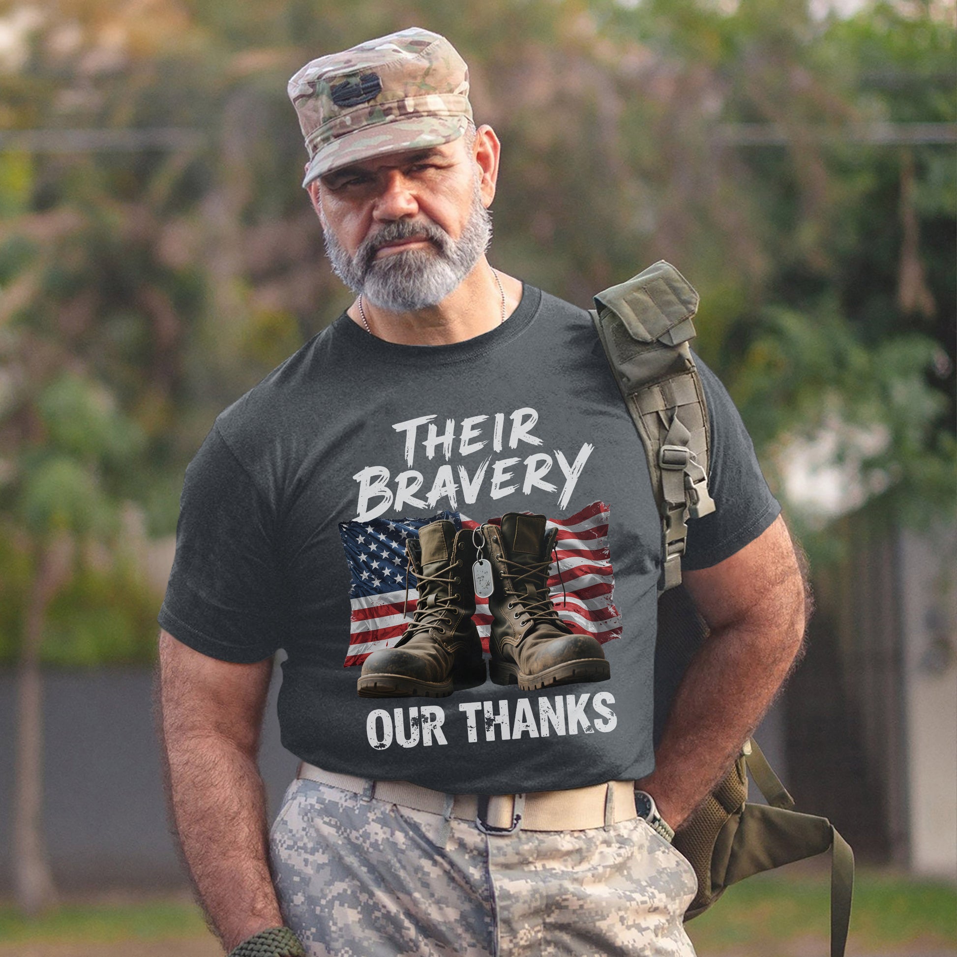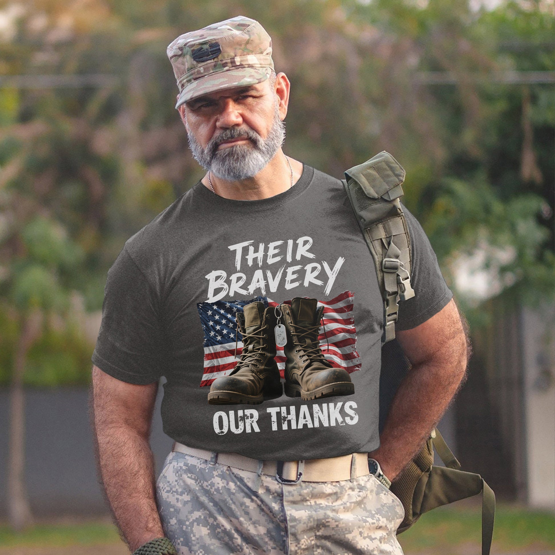 Their Bravery Our Thanks Proud US Military Veteran Honor and Patriotic Pride T-Shirt