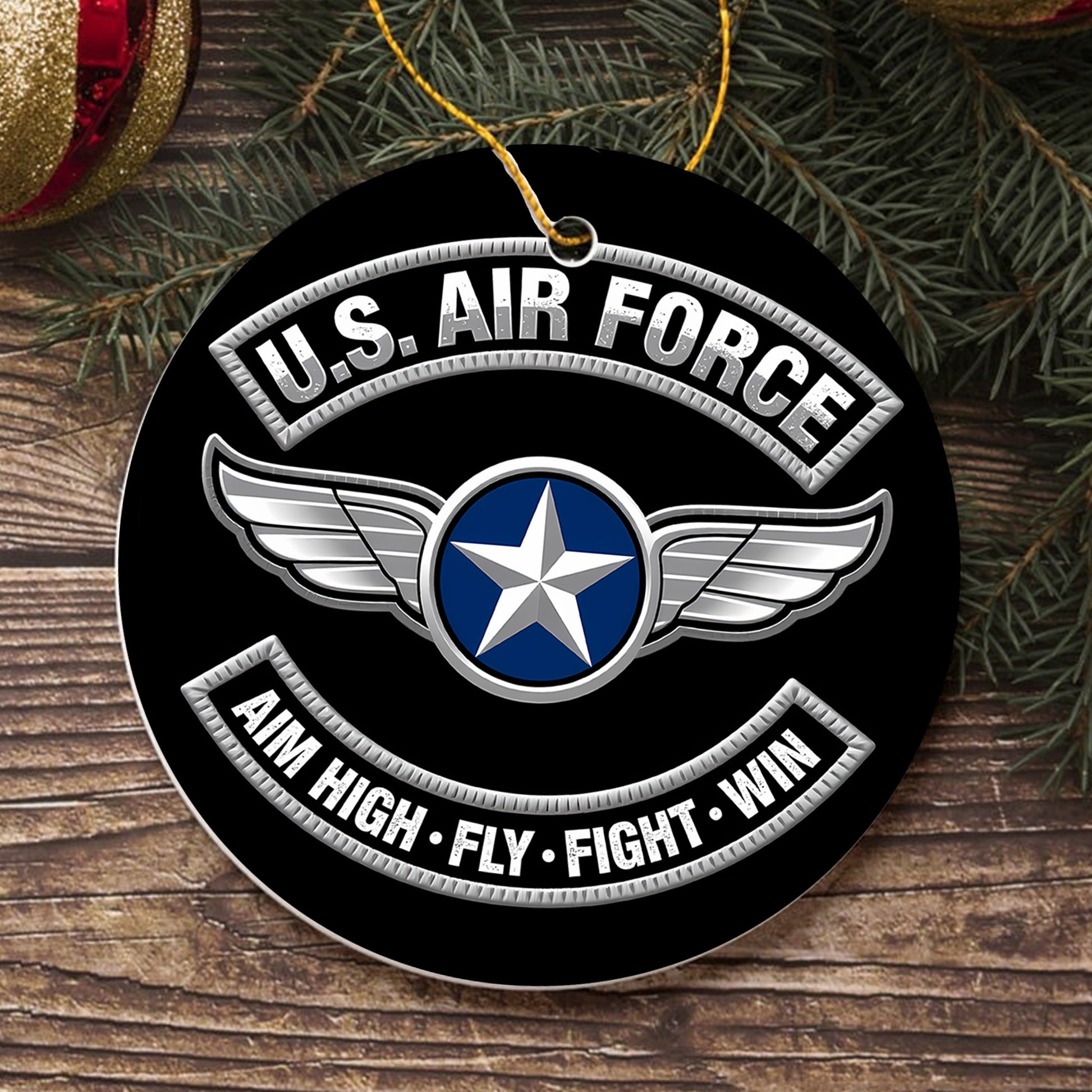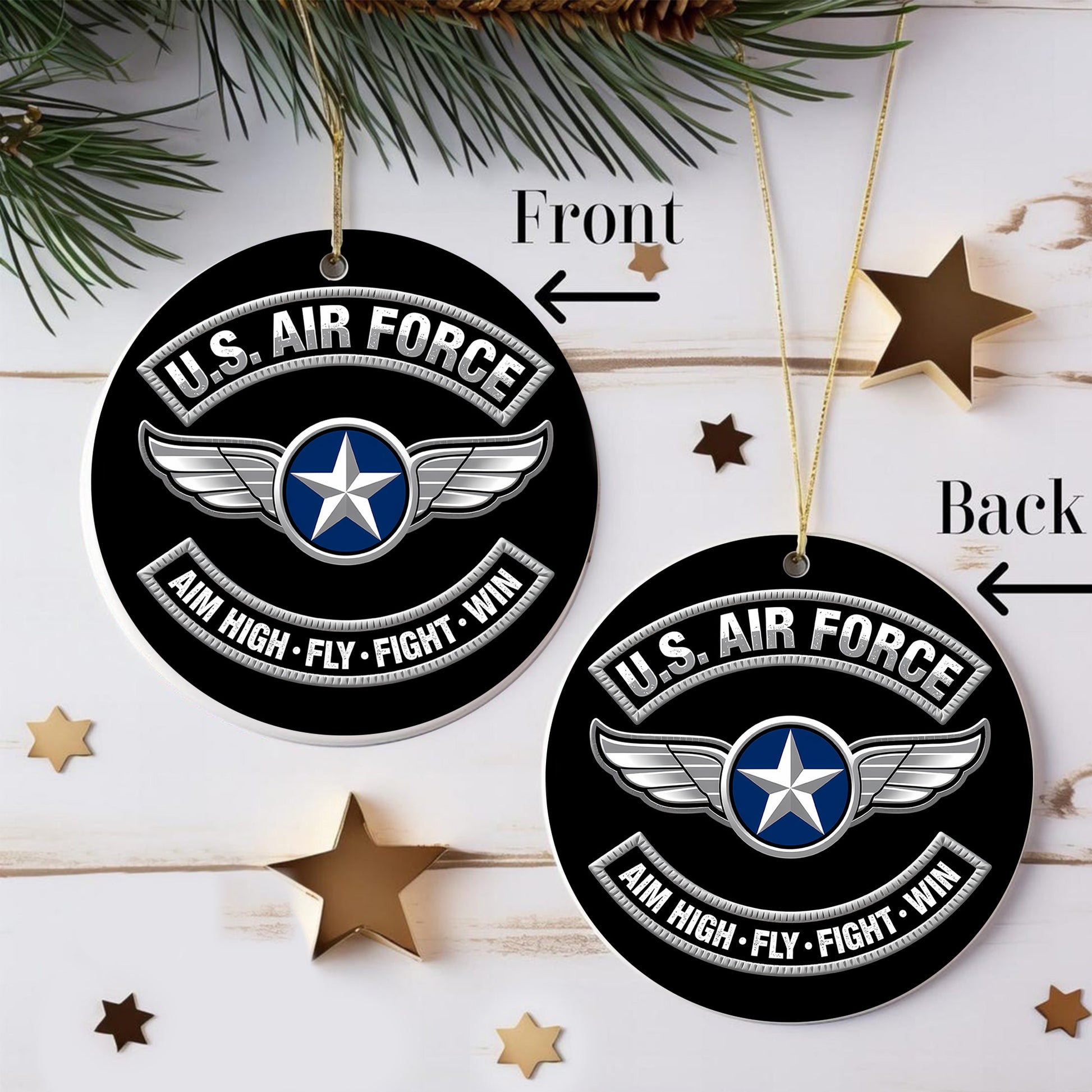 Emblazoned with the iconic Air Force insignia, this ornament symbolizes courage, brotherhood, and the relentless pursuit of excellence. It's a perfect addition to your holiday decor, honoring those who serve.