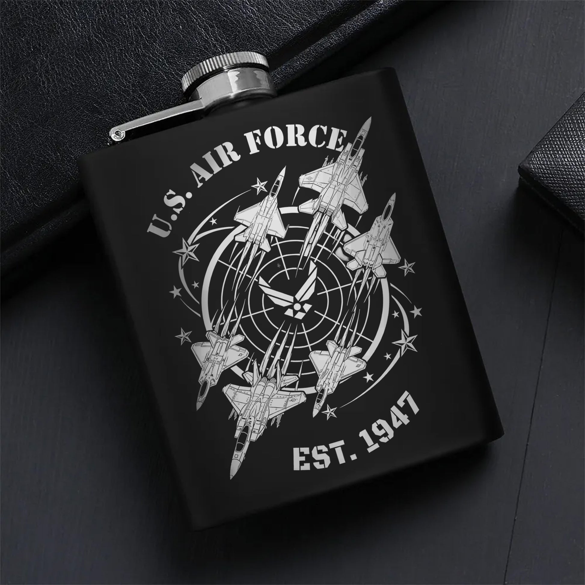 Celebrate the spirit of service with our U.S. Air Force flask, a tribute to the dedication and bravery of those who protect our freedom.