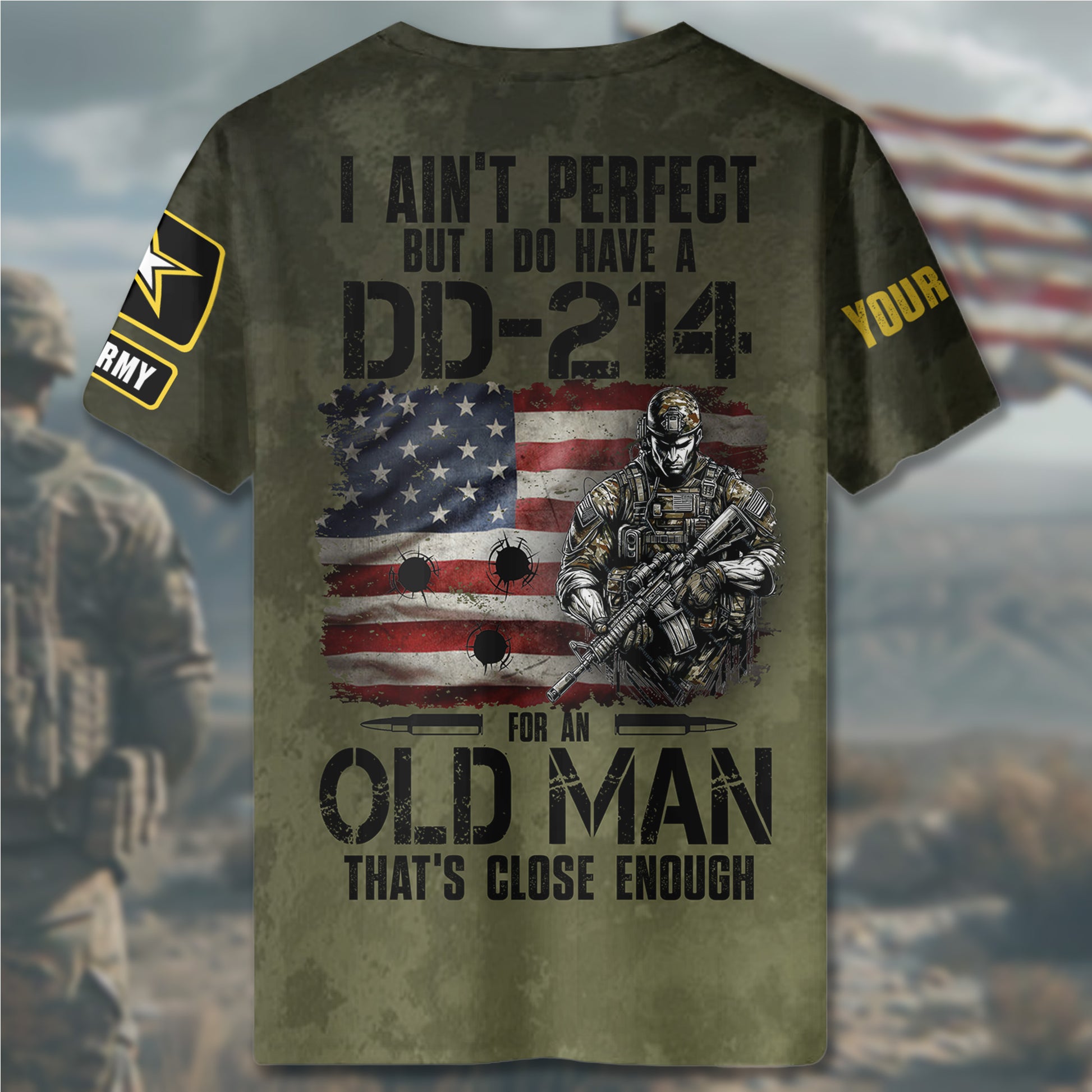 U.S. Army I Ain’t Perfect But I’ve Got a DD-214 That’s Close Enough Veteran Pride All-over Print Personalized T-Shirt