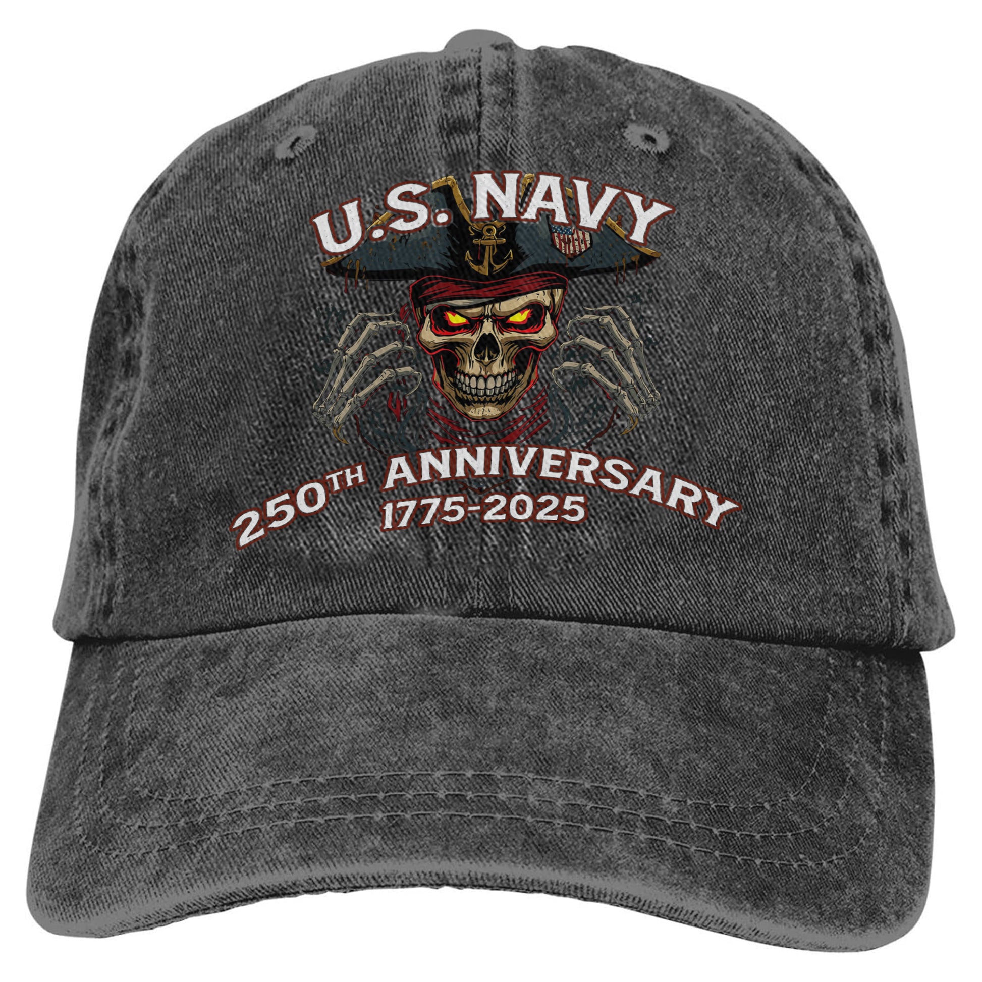 U.S. Navy 250th Anniversary Pirate Skull Hat Tribute to Sailors 1775–2025 Baseball Cap