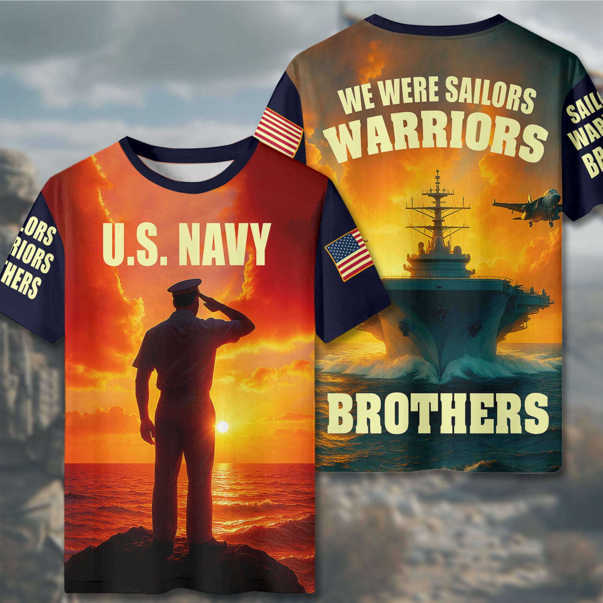 U.S. Navy We Were Sailors Warriors Brothers Bound by Honor Courage and Brotherhood Forever All-over Print T-Shirt
