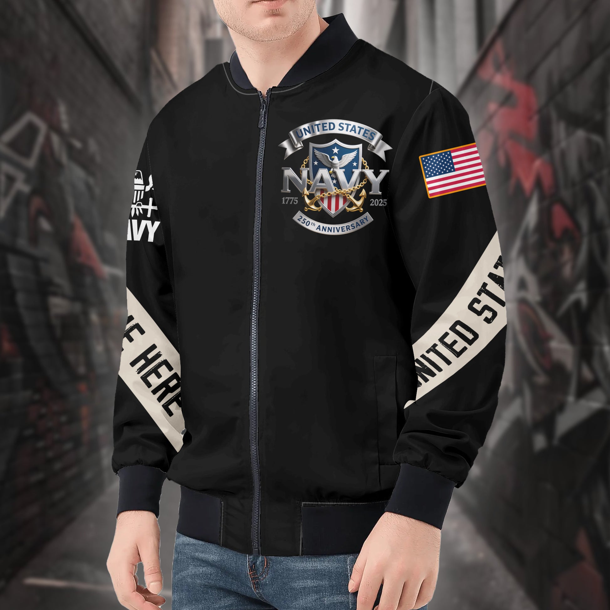 Emblazoned with the Navy's emblem and the proud message "Forged in Strength – United in Honor," this jacket embodies the spirit of brotherhood and freedom that defines our armed forces.