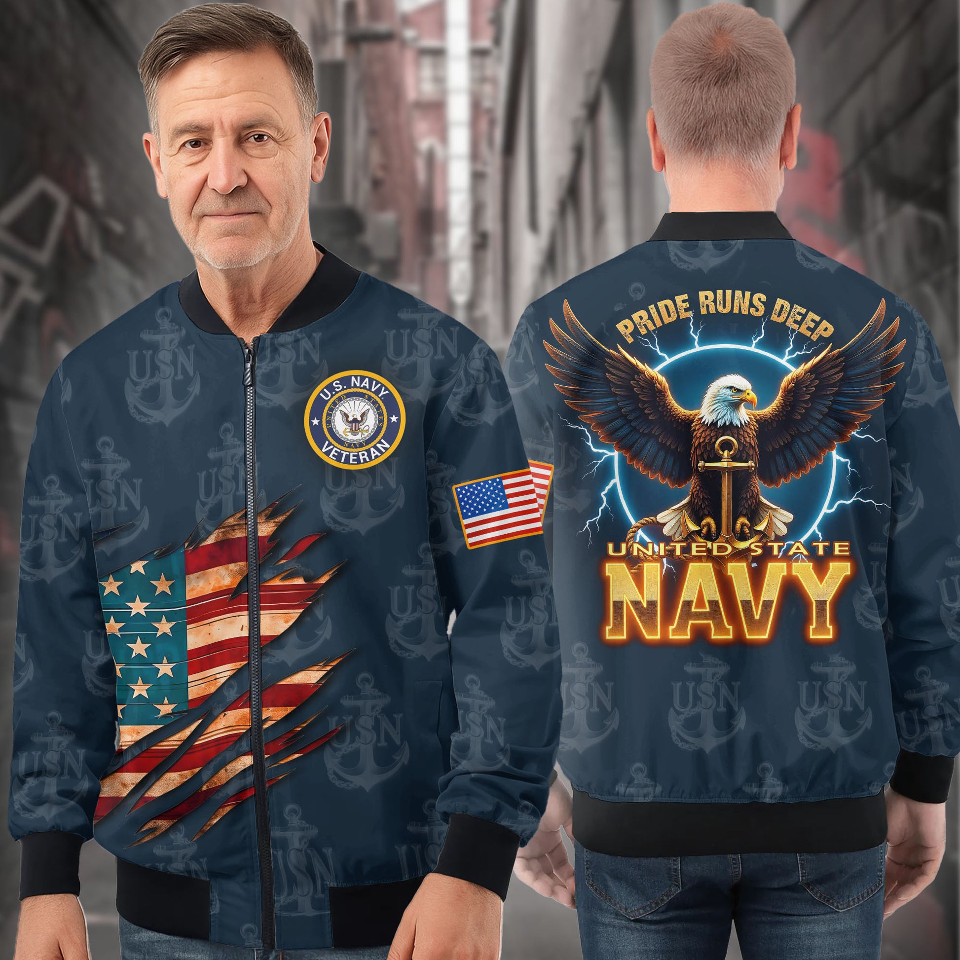 U.S. Navy Pride Runs Deep All-over Print Bomber Jacket