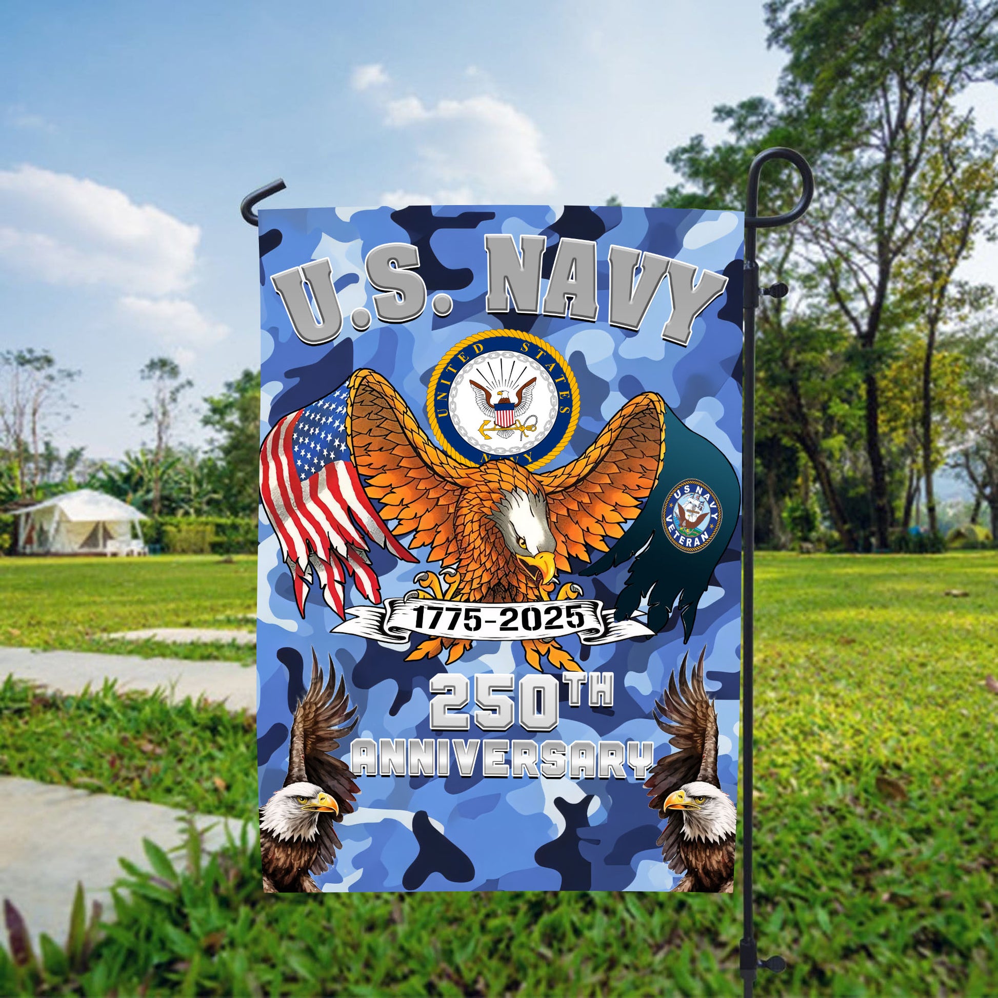 Honor the brave men and women of the U.S. Navy with this striking flag, celebrating 250 years of service and sacrifice.