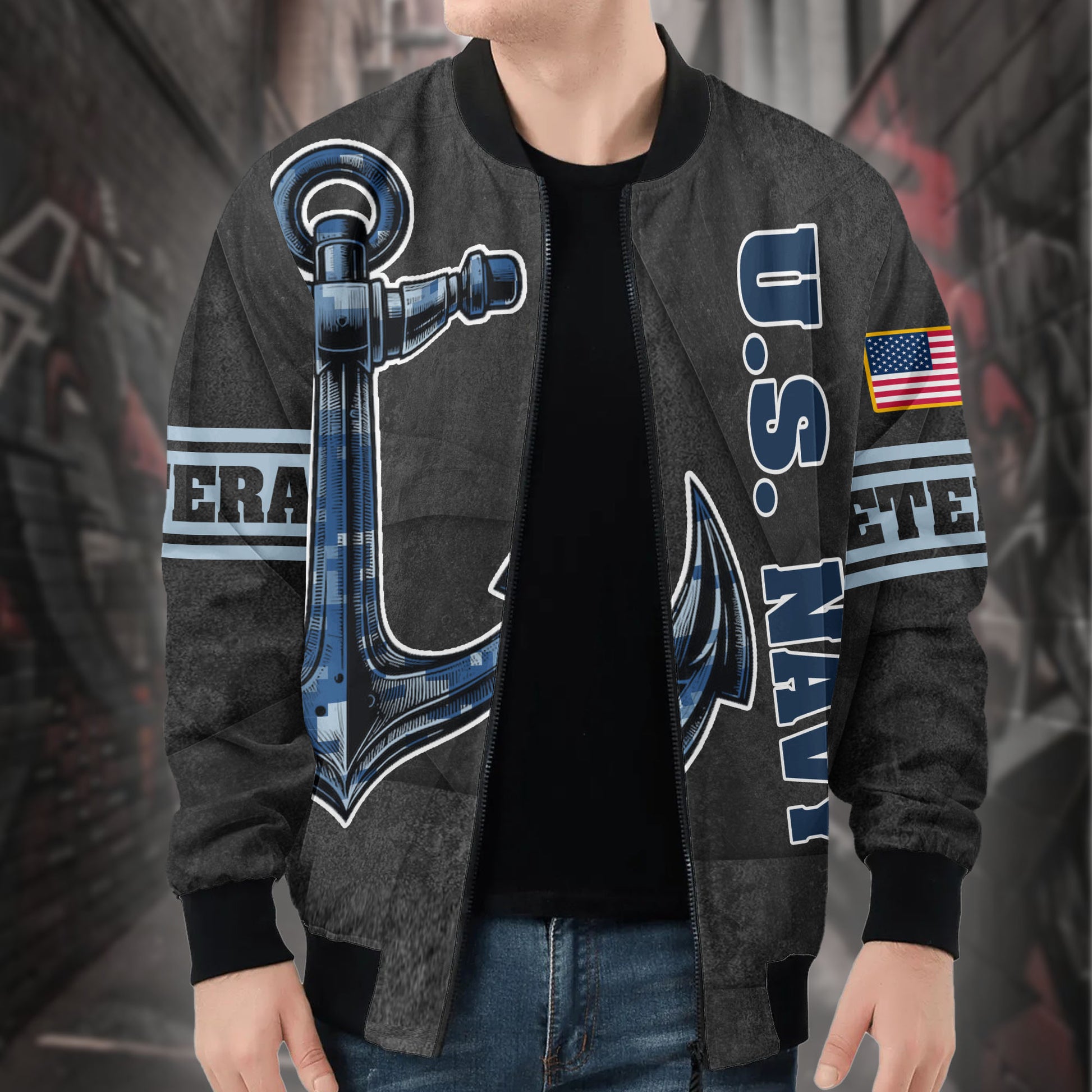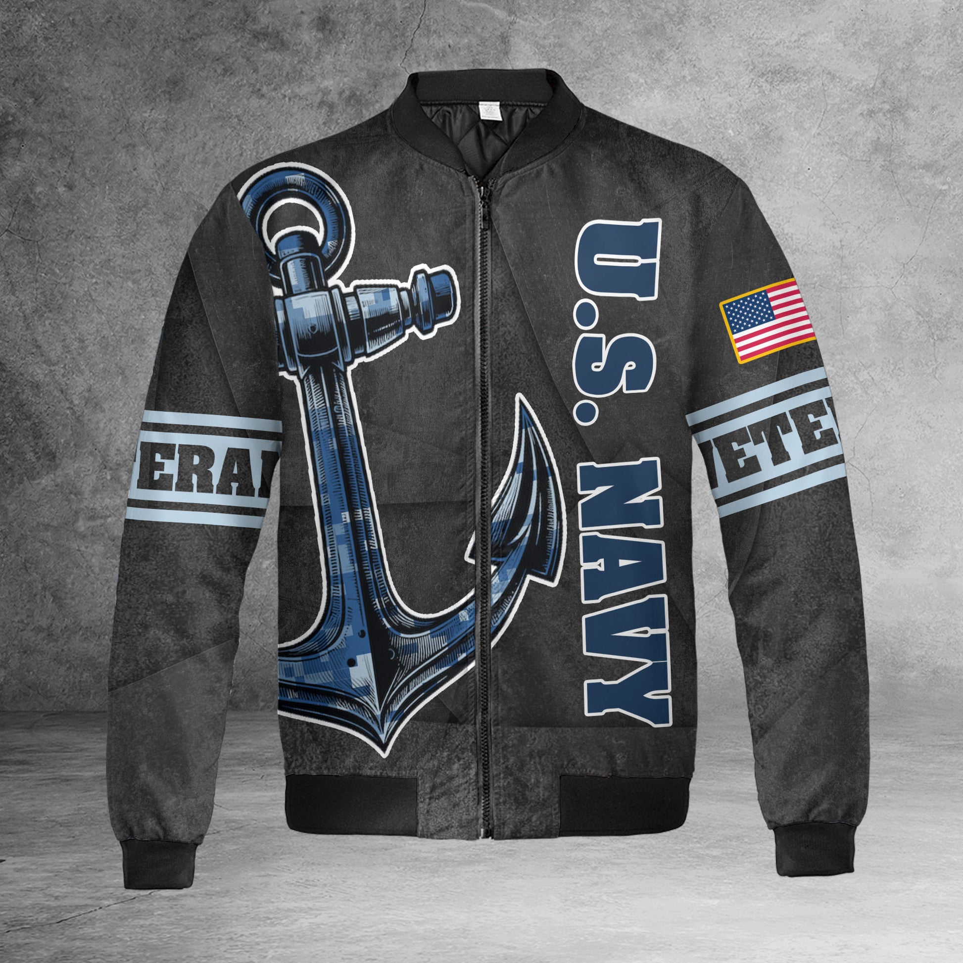Honor your service and showcase your pride with this striking U.S. Navy Veteran Bomber Jacket. Designed for those who have bravely served, it represents courage and commitment to our nation.