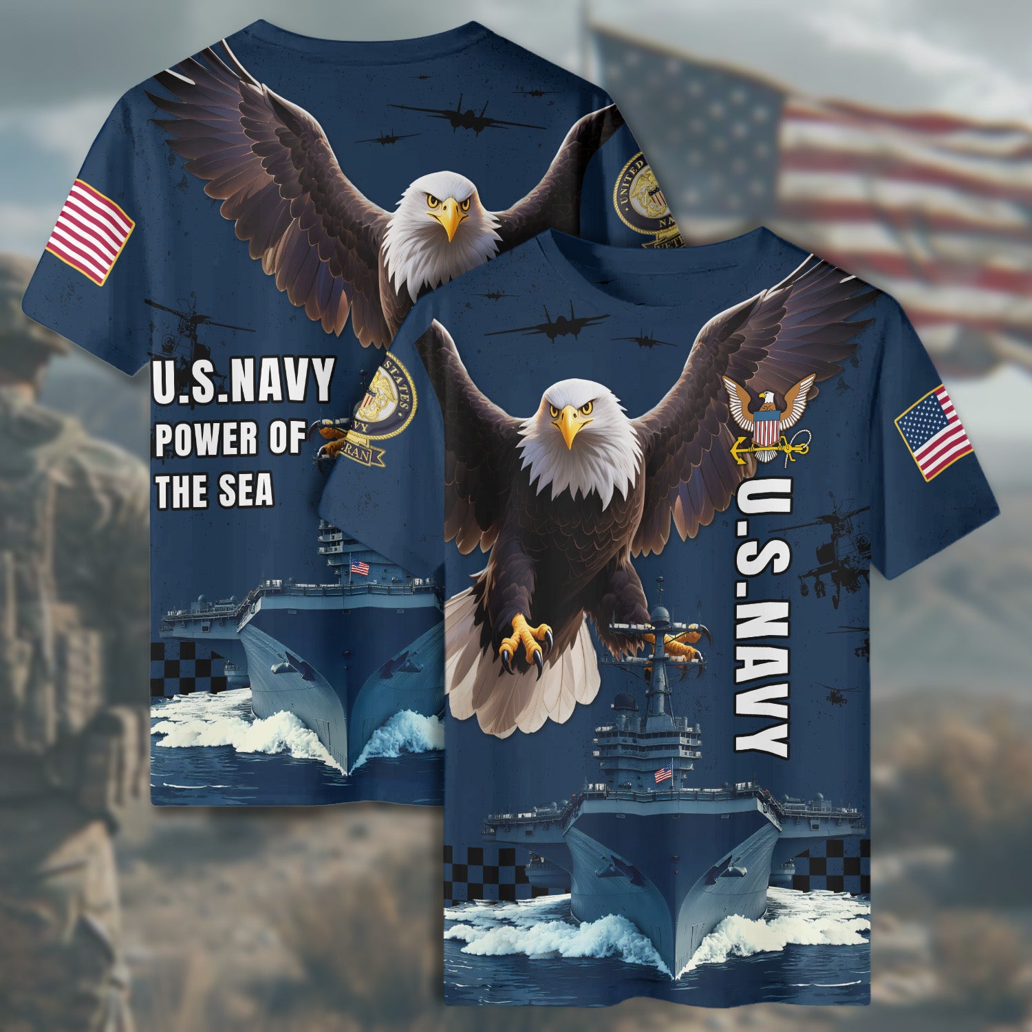 US Navy Power of the Sea Honor Courage Commitment Military Patriotic Veteran All-over Print T-Shirt