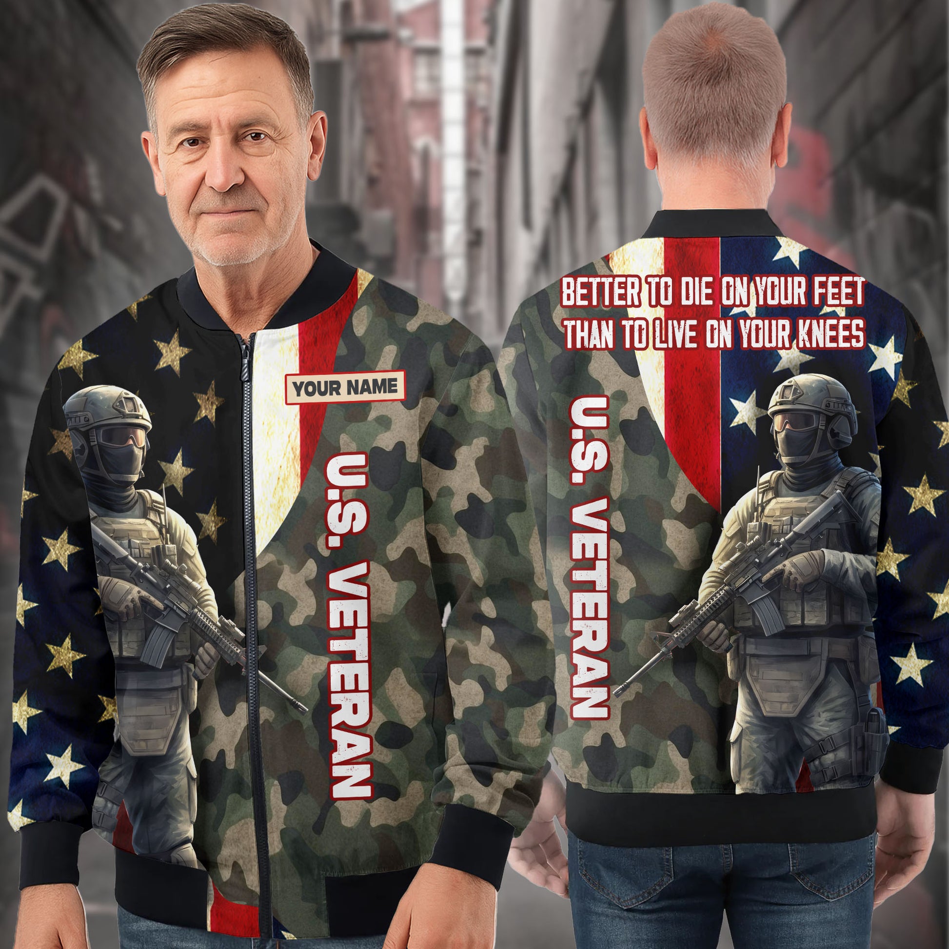 Honor your service and display your pride with our U.S. Veteran Bomber Jacket. This unique piece is designed for those who have bravely served our country, offering both style and a personal touch.