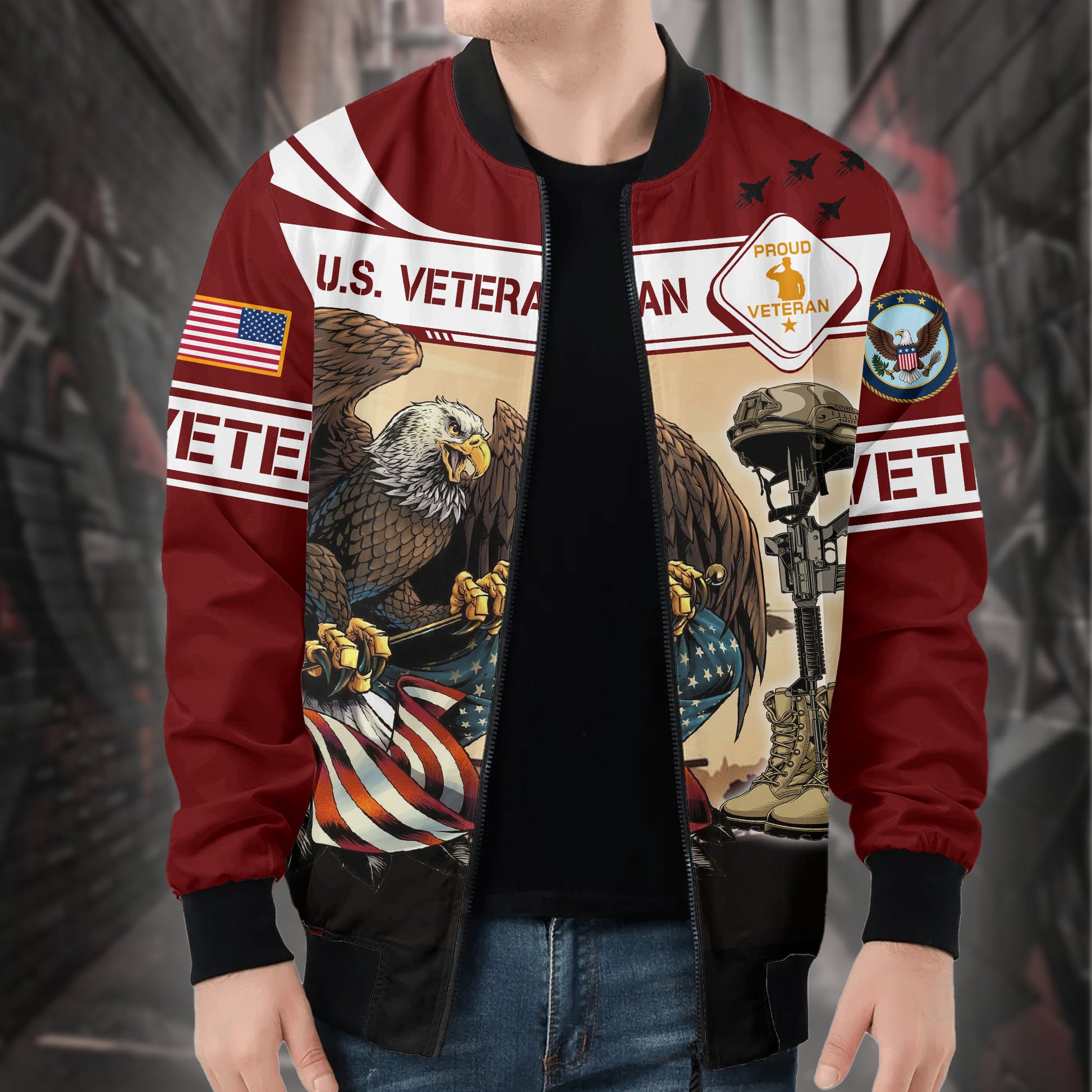 US Veteran Eagle Holding American Flag Patriotic Military Honor and Sacrifice Hoodie All-over Print Bomber Jacket