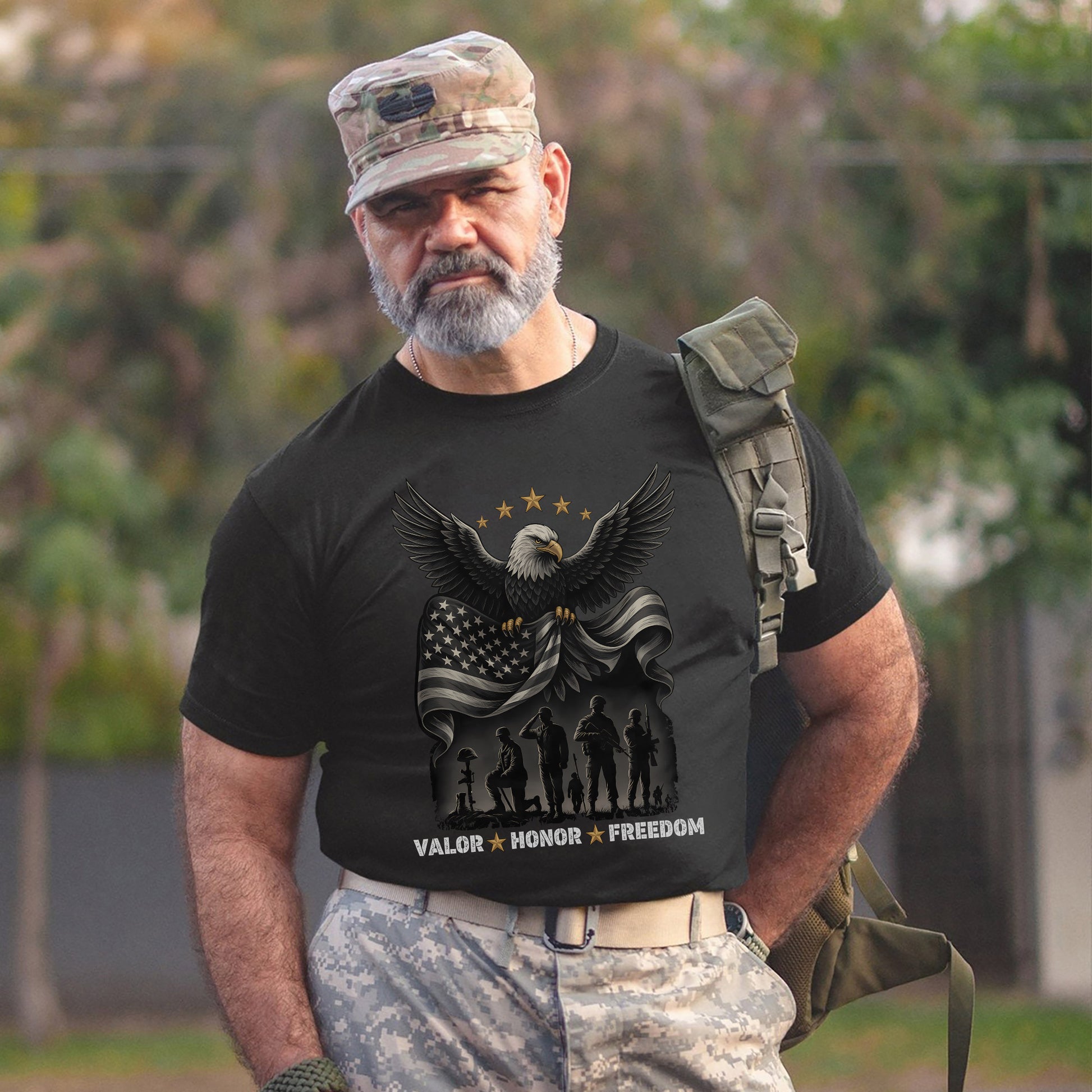 Valor Honor Freedom Proud US Military Veteran Patriotic Pride T-Shirt