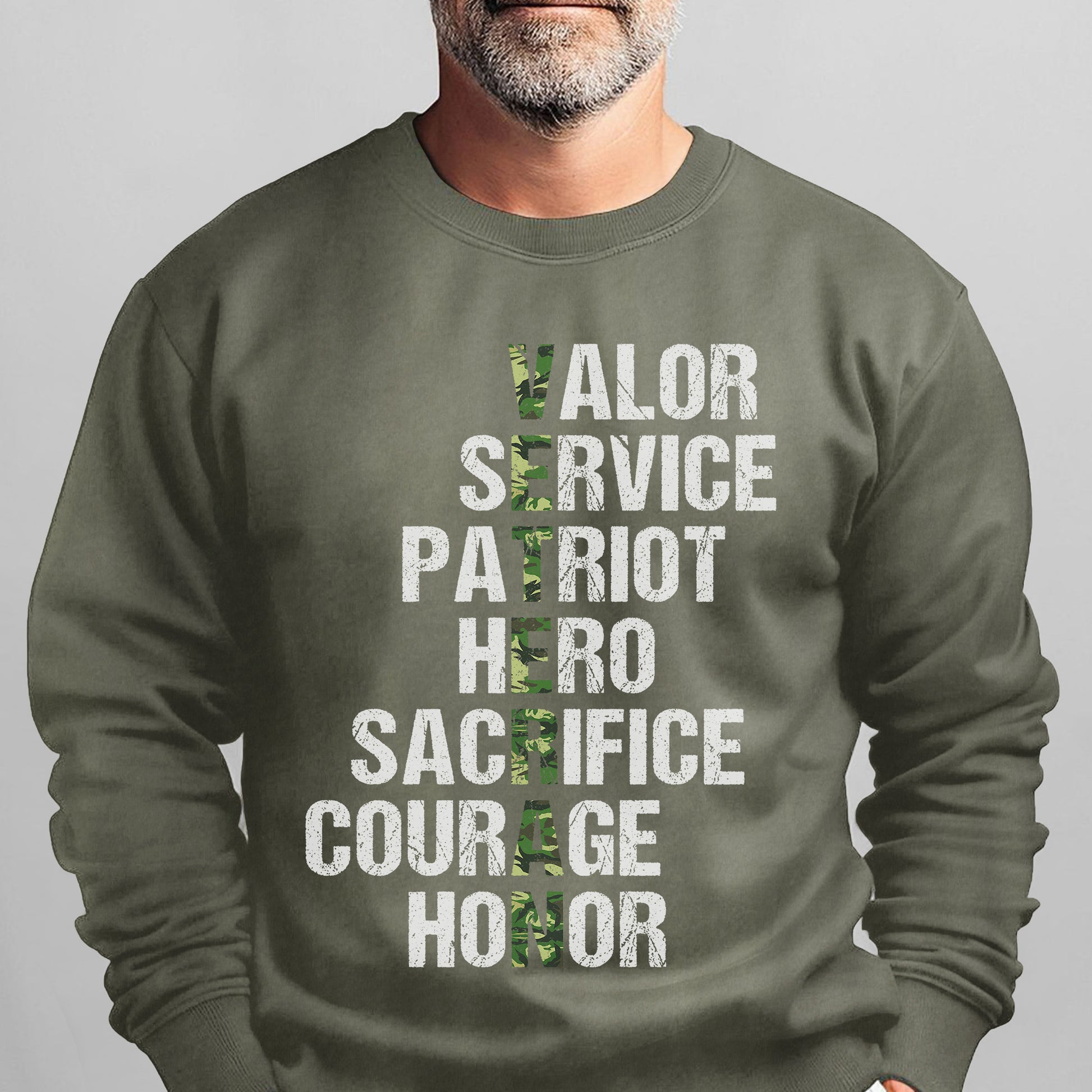 Celebrate the bravery and dedication of our heroes with this powerful sweatshirt, designed to honor those who have served.