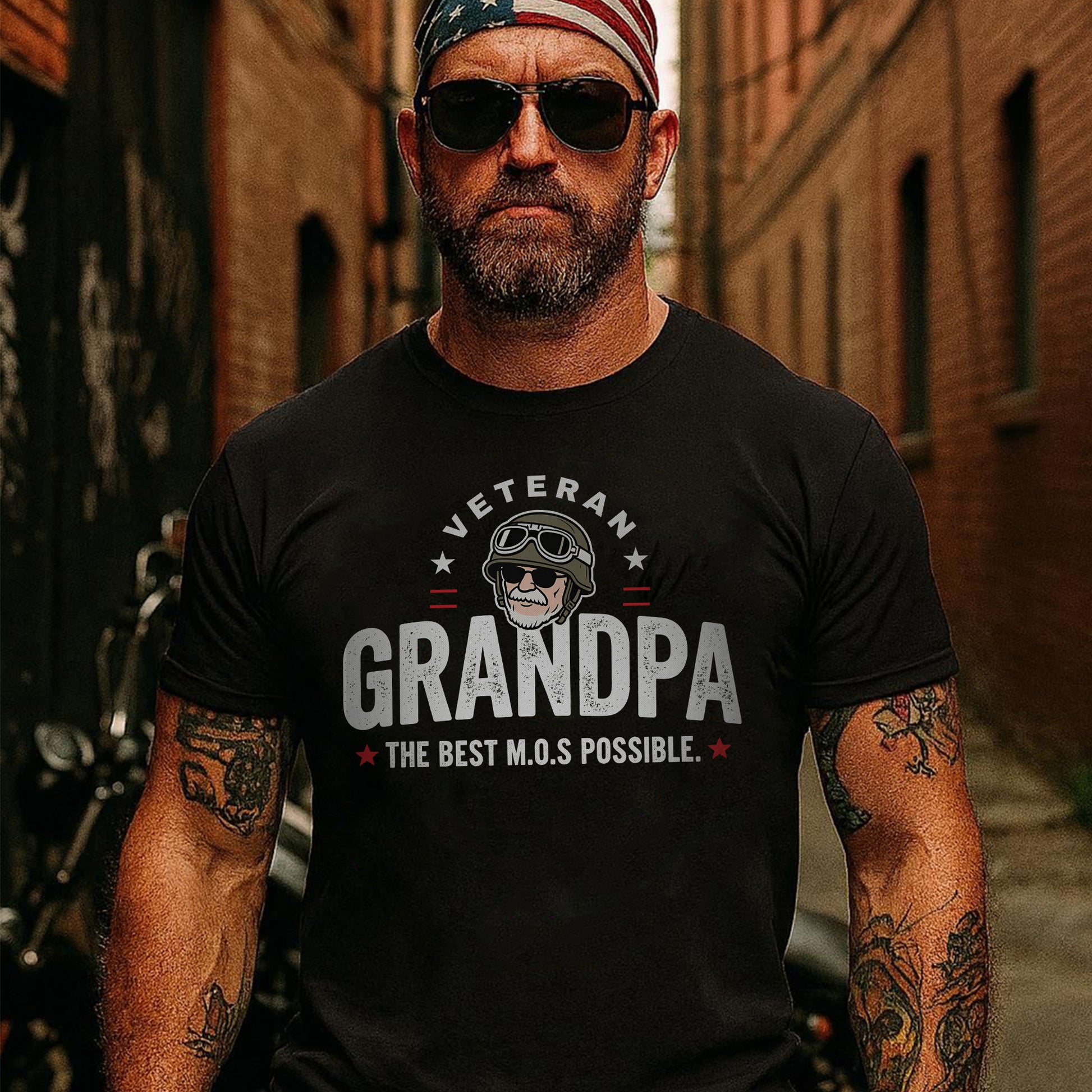 Veteran Grandpa The Best M.O.S Possible Proudly Serving Family with Love Honor and Legacy T-Shirt