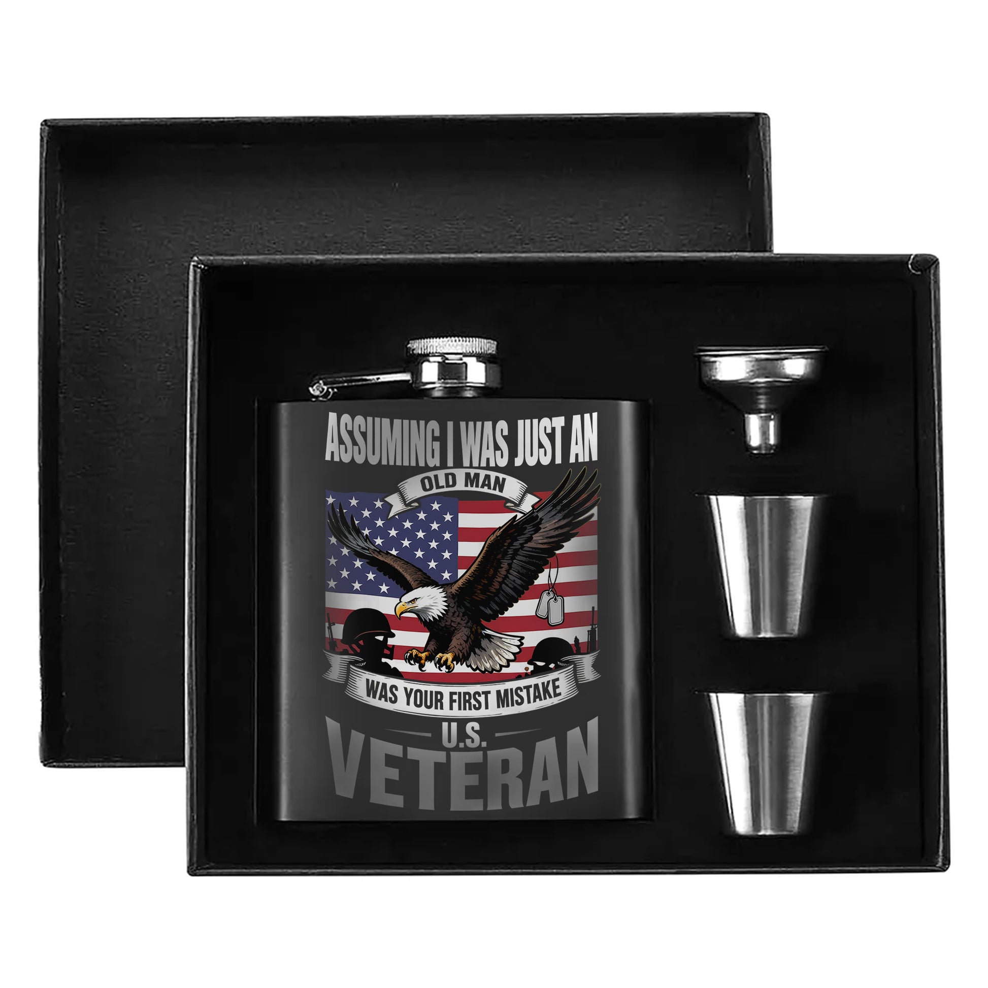 Veteran's Bold Statement of Experience Hip Flask Set