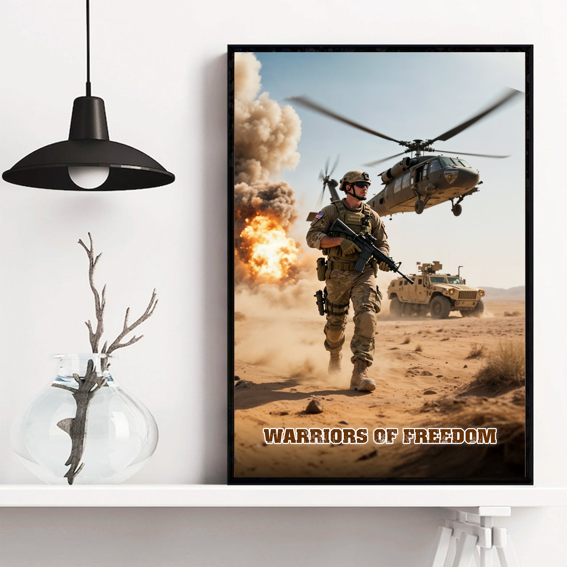 This Poster serves as a powerful reminder of the courage, brotherhood, and freedom our service members fight to protect every day.