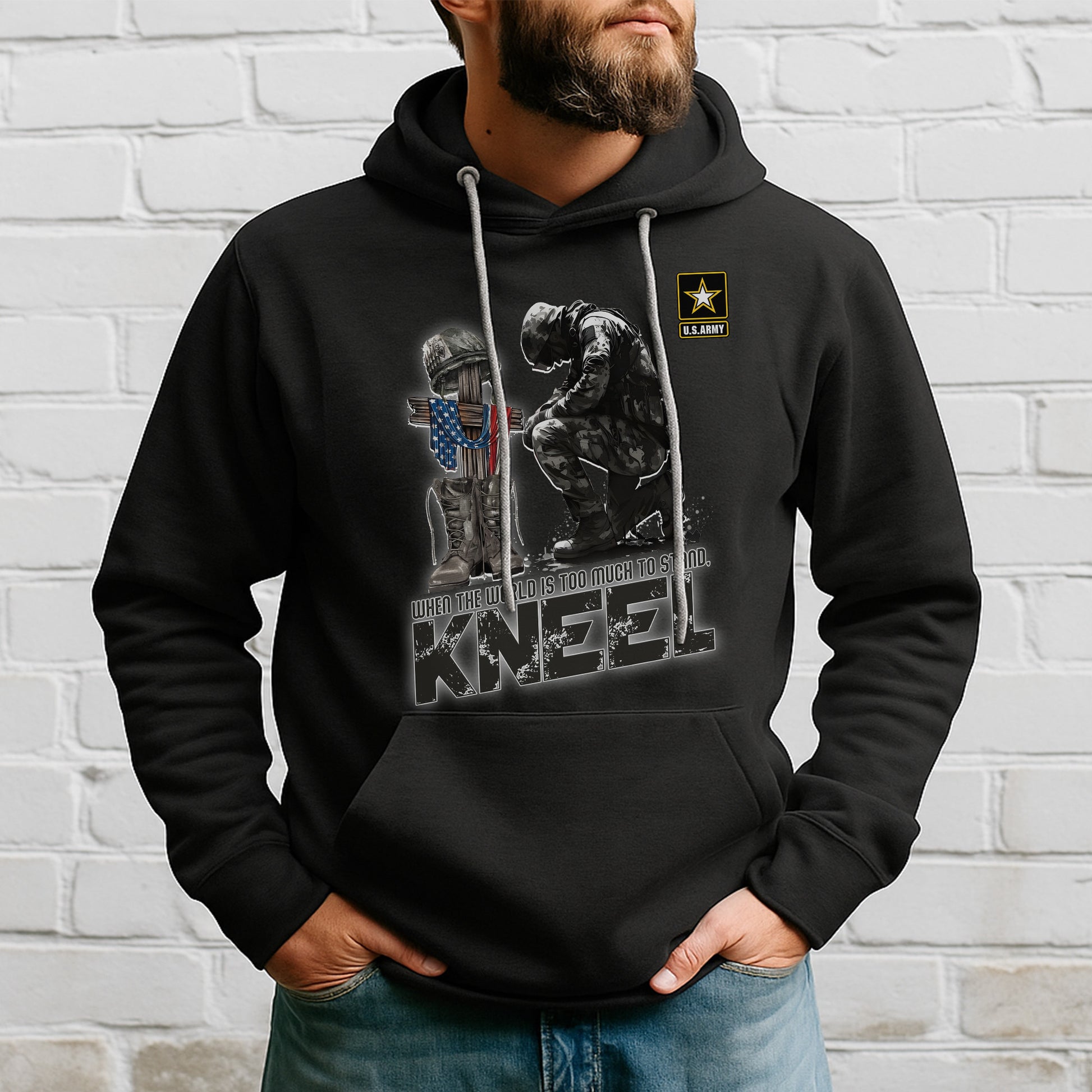 When the World Is Too Much to Stand Kneel U.S Veteran Christian Jesus Military Hoodie