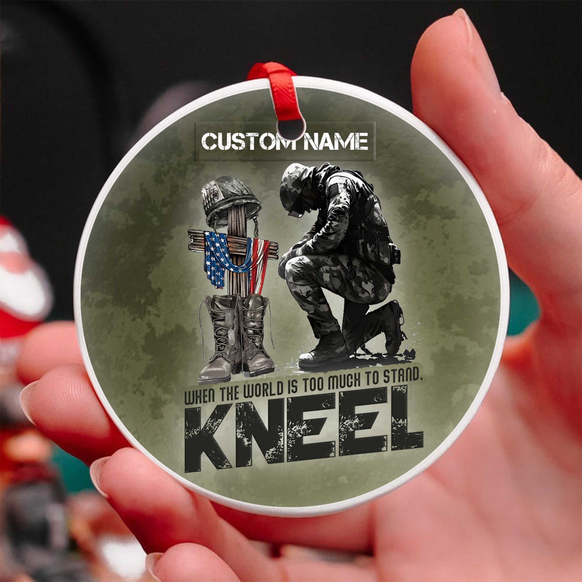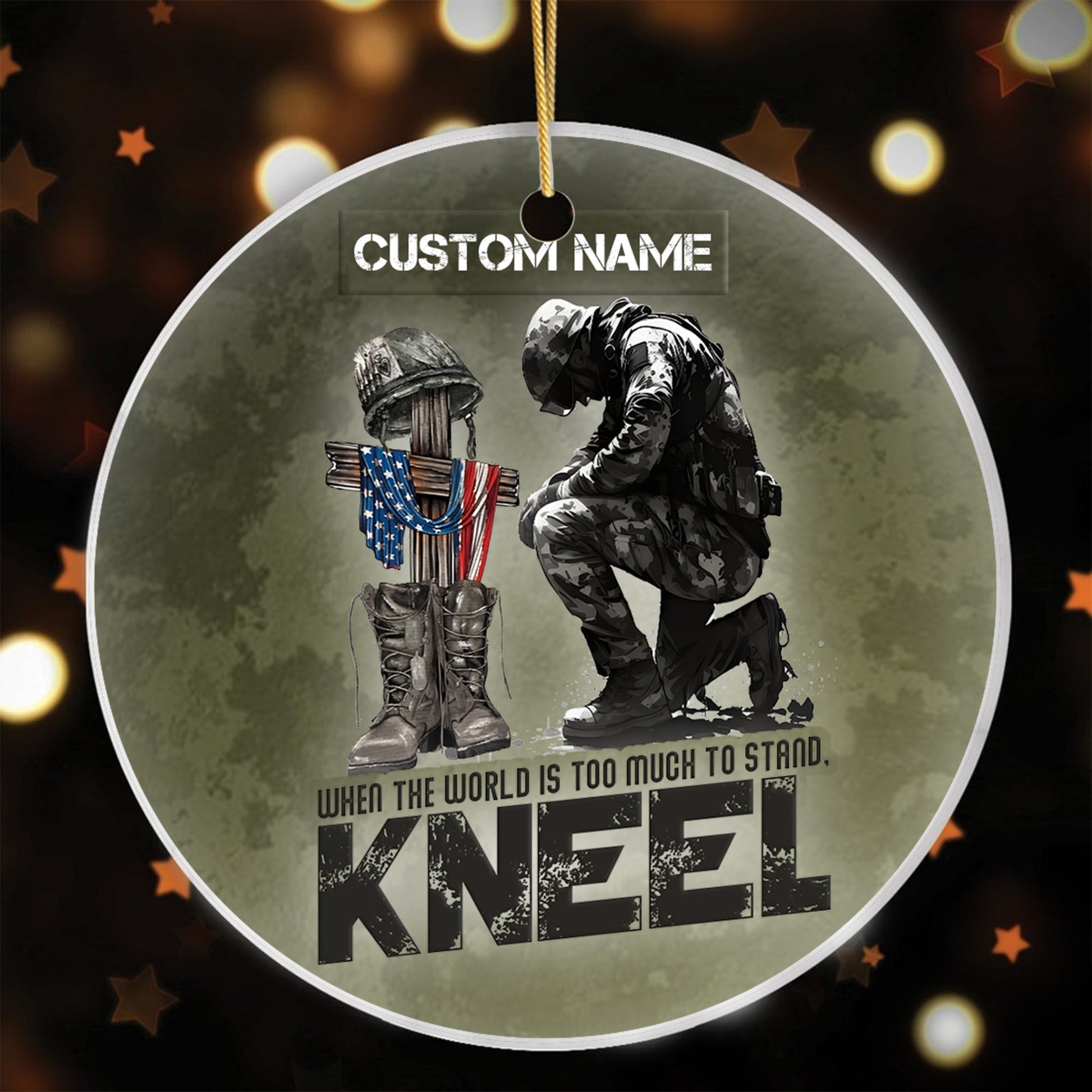 When the World Is Too Much to Stand Kneel U.S Veteran Christian Jesus Military Personalized Ornament