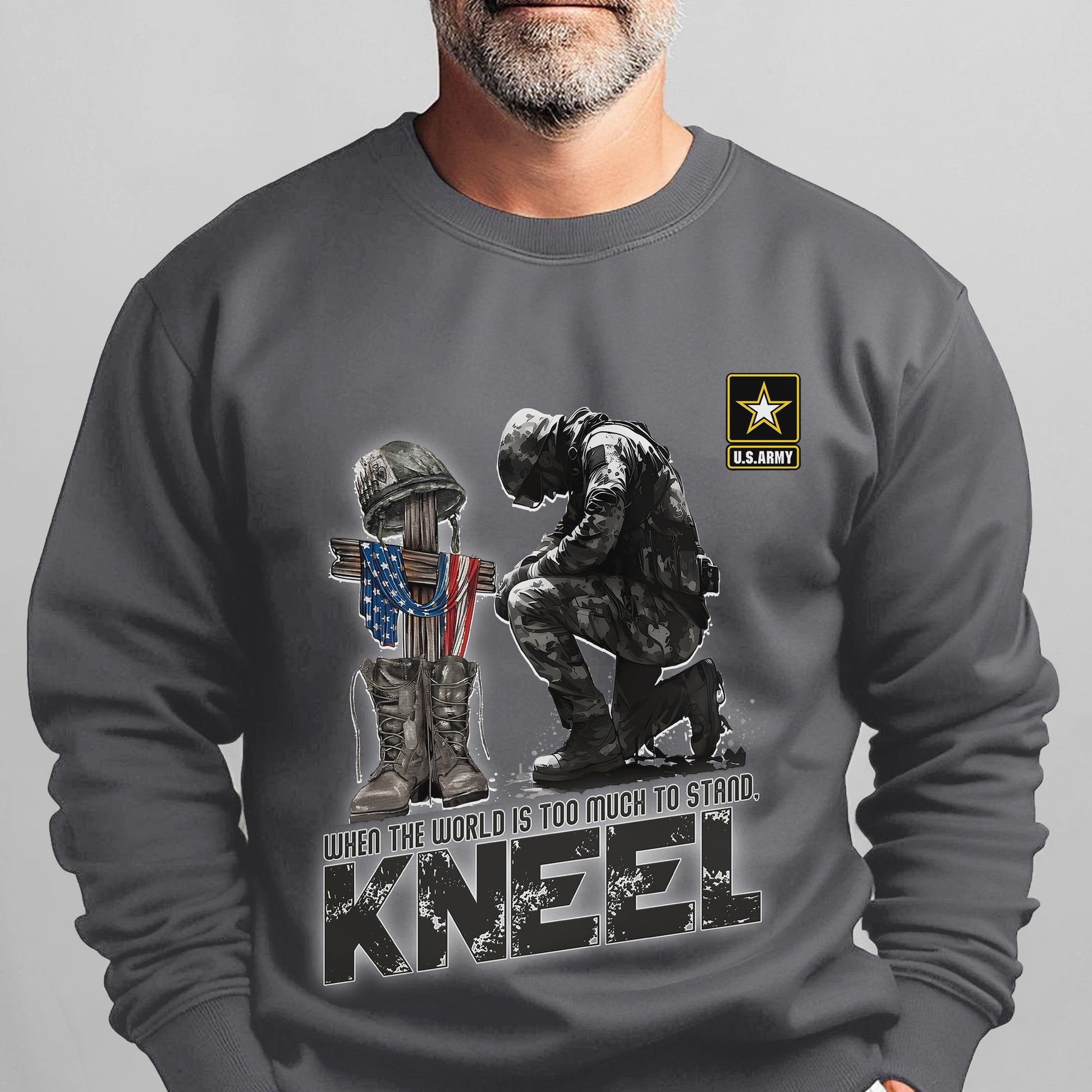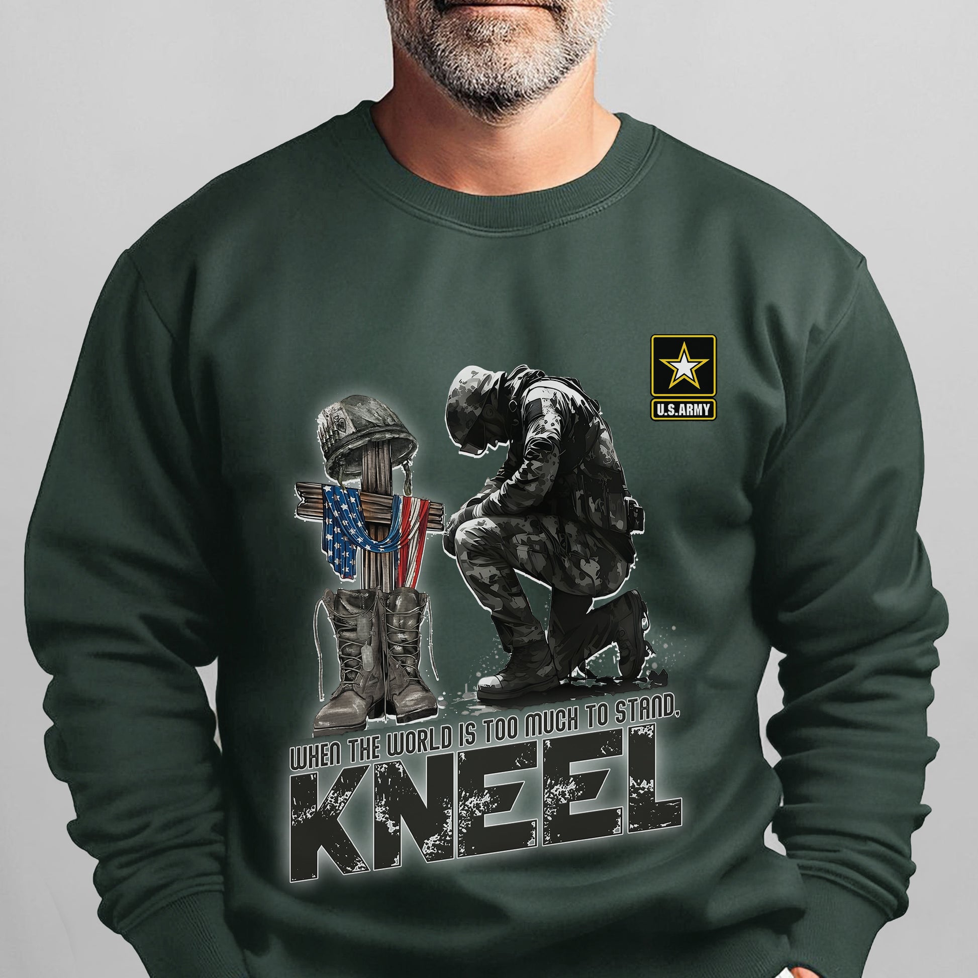 When the World Is Too Much to Stand Kneel U.S Veteran Christian Jesus Military Sweatshirt
