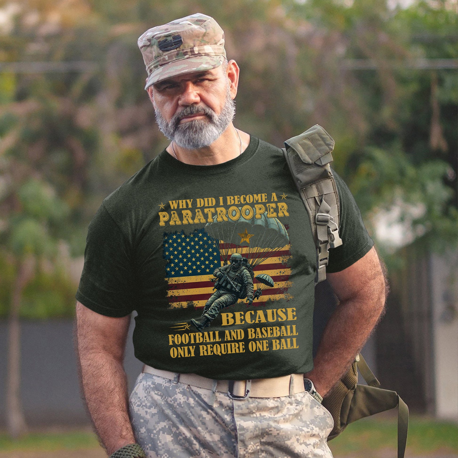 Why Did I Become a Paratrooper Because Football and Baseball Only Require US Military Veteran T-Shirt