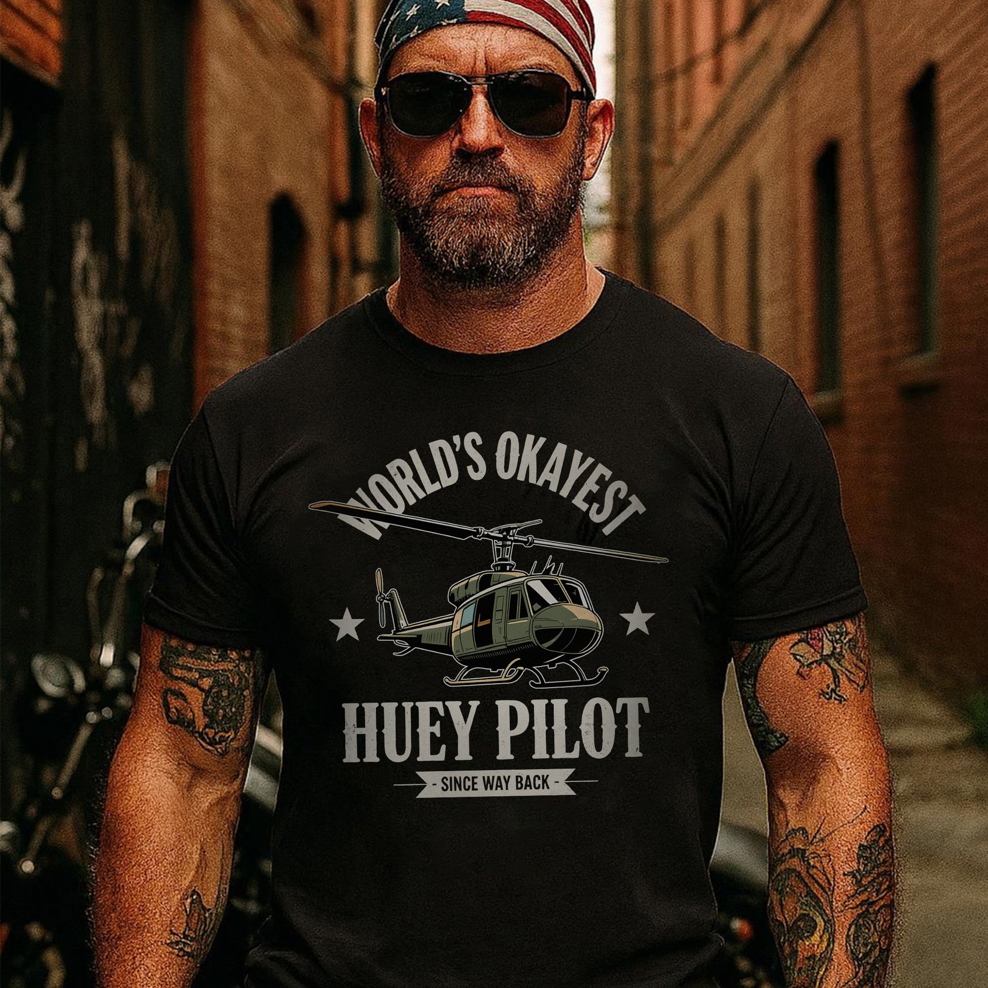 World’s Okayest Huey Pilot Since Way Back Funny and Proud Military Aviation Throwback T-Shirt